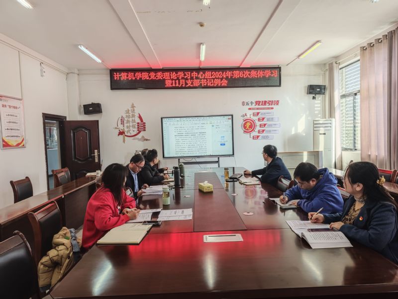 11月29日,计算机学院于逸夫楼305会议室召开学院党委理论学习中心组2024年第6次集体学习暨11月支部书记例会。学院党委委员、基层党支部书记参加了会议,会议由学院党委书记邓默耘主持。