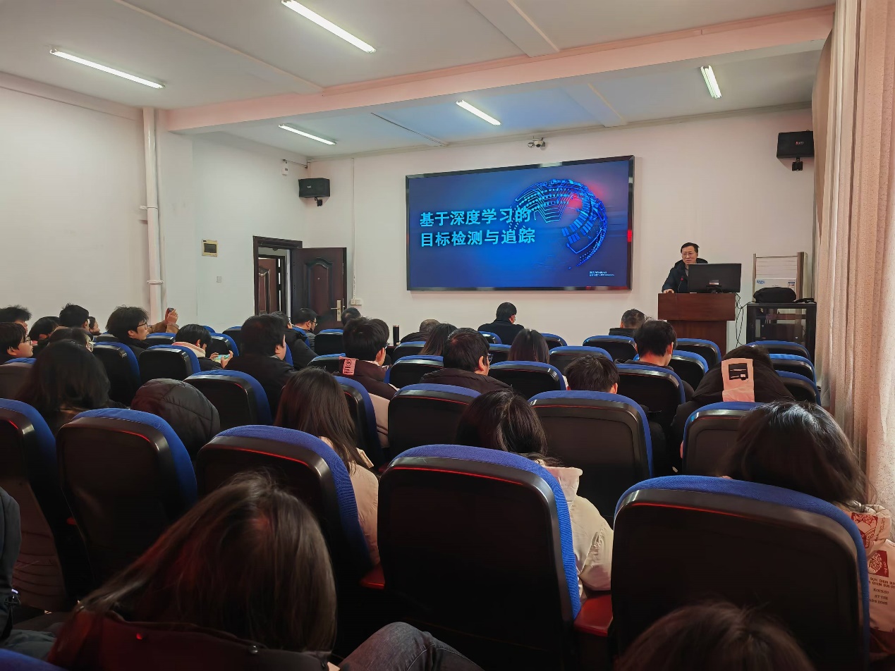 在报告的后半部分,雷教授分享了基于信息感知和跨层特征融合的航拍小目标检测算法,深入探讨了如何提升小目标检测精度,尤其是在航拍图像中的应用。紧接着,他介绍了改进YOLOv7-tiny的轻量级行人检测算法,重点阐述了这一算法如何提高行人检测效率,适应实际应用中的实时性需求。报告的最后,雷教授还提出了基于模板更新和特征增强的视觉跟踪技术,并展望了人工智能的发展趋势,阐述了“未来已来:拥抱AI”这一主题的重要性。