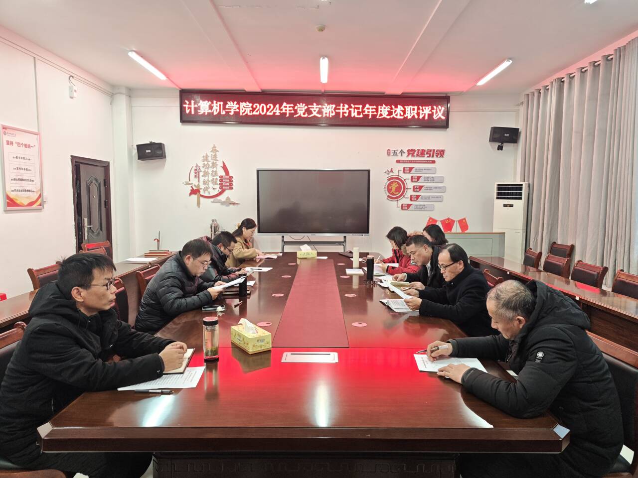 学院5个党支部书记紧密围绕支部理论学习情况、党员管理教育、党支部规范化建设、党员先锋模范带头作用发挥、服务联系师生等方面结合本年度各项工作的落实情况,就“2024年度基层党建主要工作”、“存在的突出问题”、“下一步工作打算”等方面展开述职汇报。