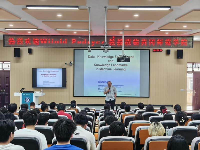 随后,Witold Pedrycz院士在我校B03学术报告厅进行了精彩的学术讲座。此次讲座的主题为《Data–Knowledge Environment and Knowledge Landmarks in Machine Learning》,吸引了william英国中文、机电学院、物电学院、数学与统计学院等多个学科的师生积极参与。讲座由william英国中文院长何中林教授主持。