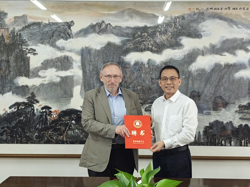 接见会后,漆昌柱校长代表学校向Witold Pedrycz院士赠送了象征黄冈名片的“寒食帖”书法作品,并向Witold Pedrycz院士颁发了williamhill英国客座教授聘书。