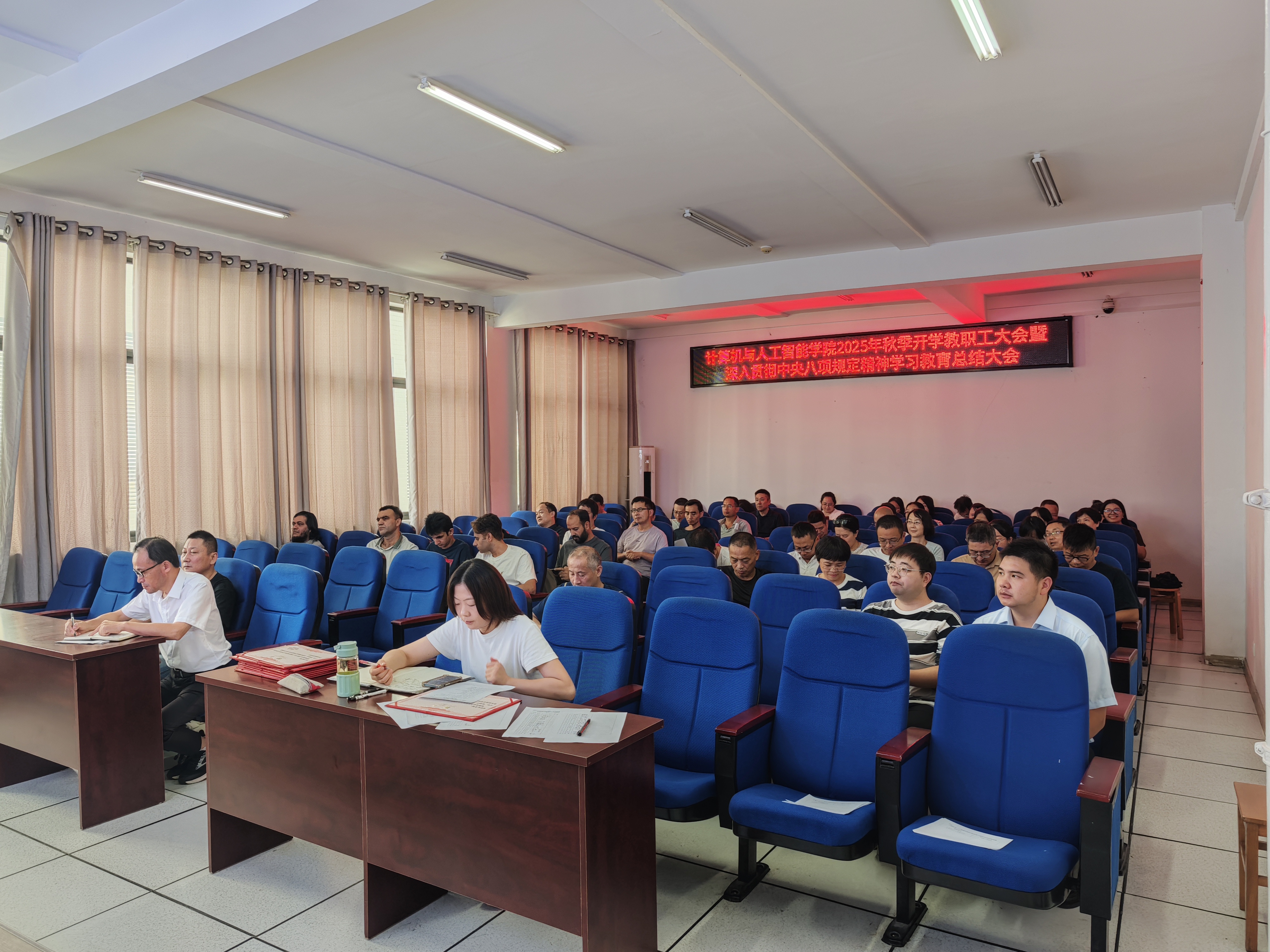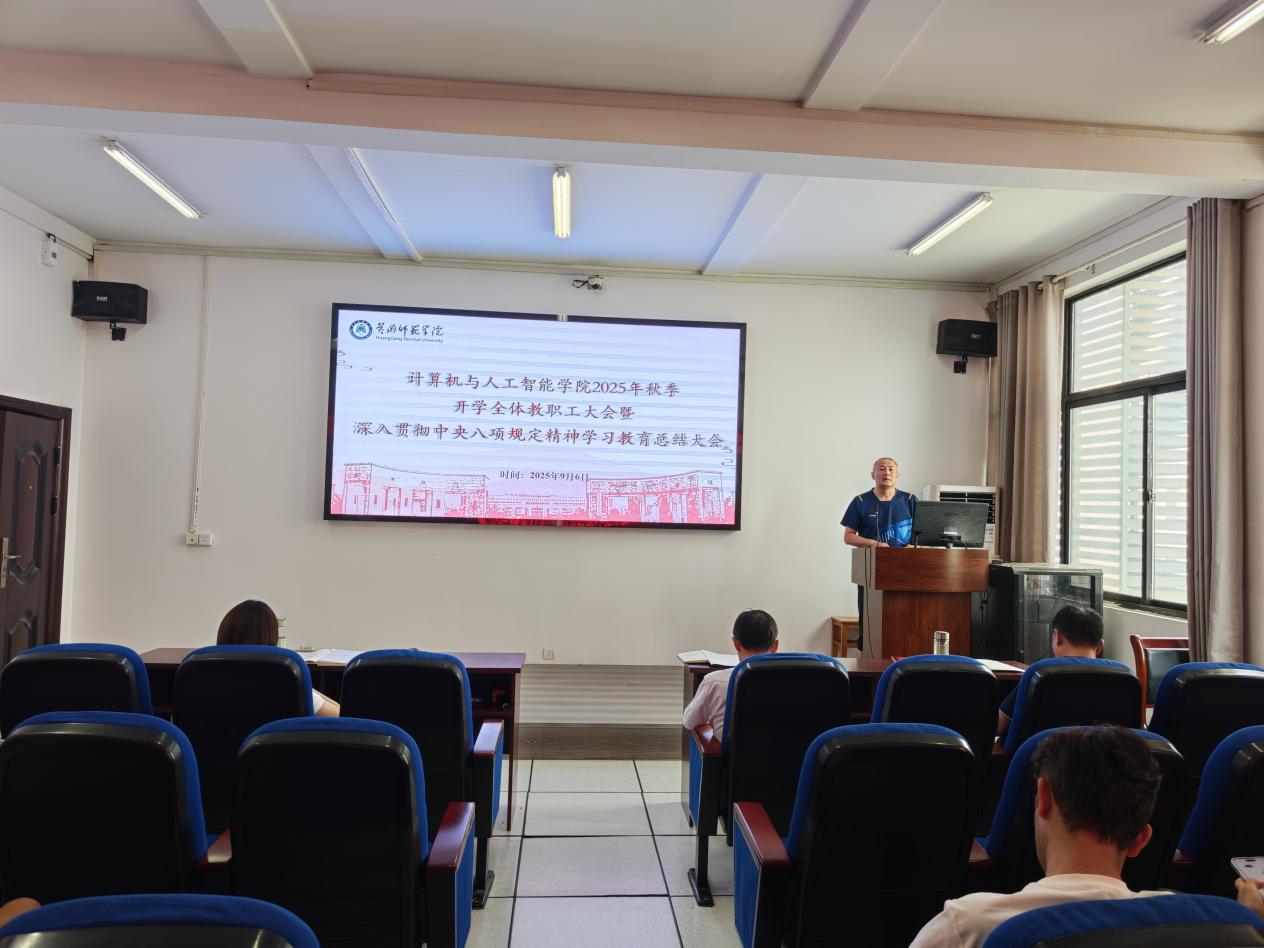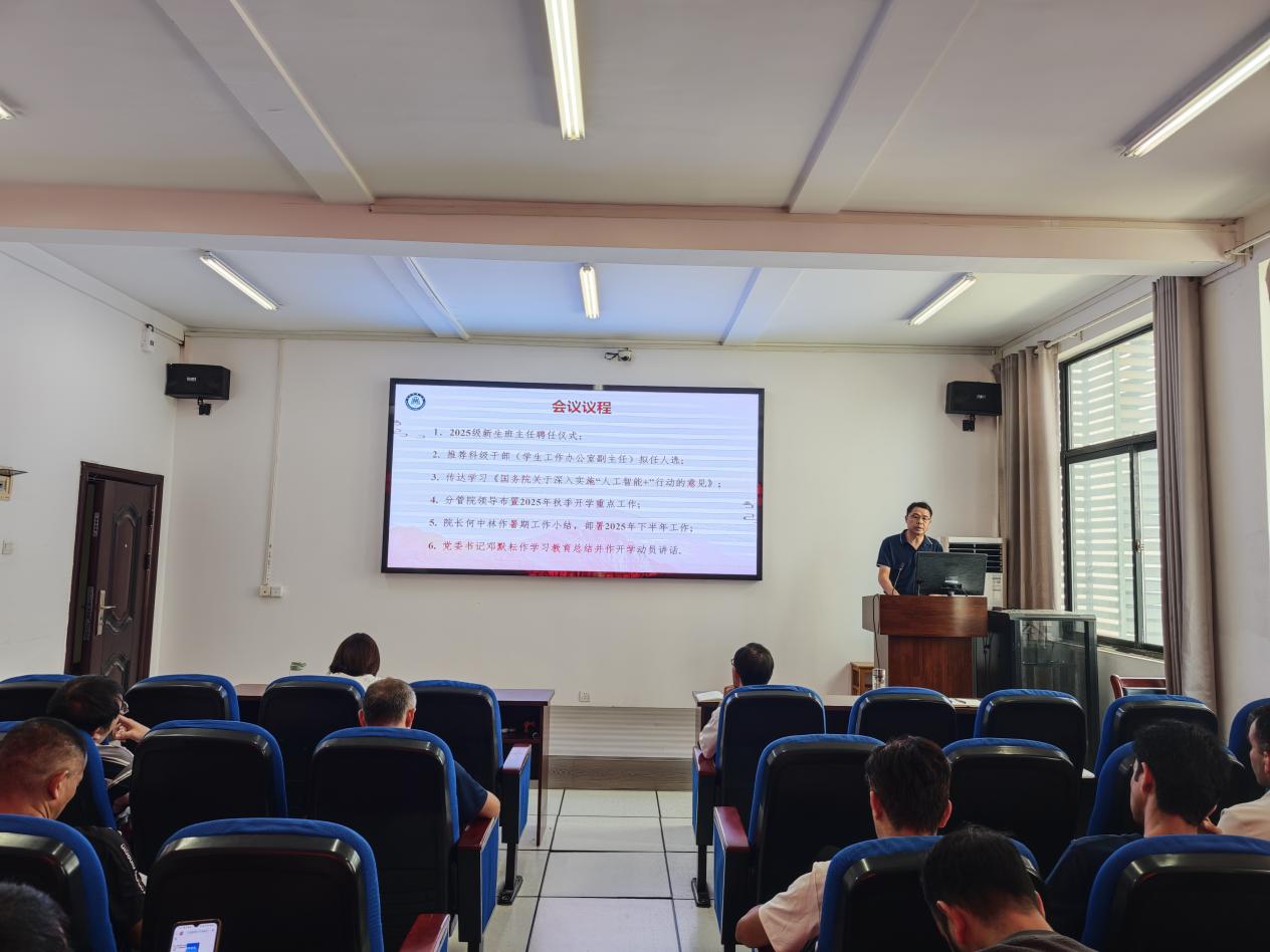 会上,院长何中林全面总结回顾了学院在暑期期间于软件工程专业工程认证、科研攻关、项目申报等方面取得的阶段性成果,并对全体教职工的辛勤付出表示感谢。立足新学期新起点,何院长围绕“提质、增效、创新”的核心目标从强化一流专业与课程建设、提升科研创新与项目申报能力等方面,对2025年下半年的重点工作进行了系统部署,号召全院教职工凝心聚力,共同推动学院事业发展再上新台阶。
